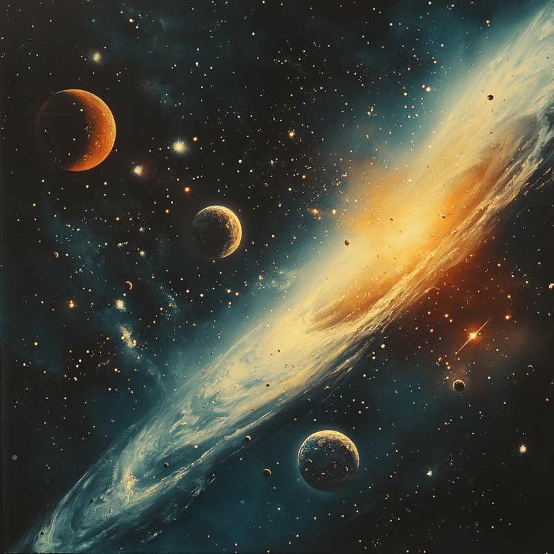 A breathtaking cosmic scene showcasing vibrant planets, shimmering stars, and a glowing spiral galaxy. The harmony of celestial bodies evokes the infinite beauty of the universe.